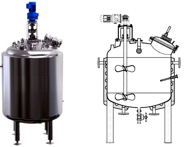 304、316L材料制作,以及設置加熱、冷卻裝置,以滿足不同的工藝和生產需要.加熱形式有夾套加熱、盤管加熱,該設備結構合理、工藝先進